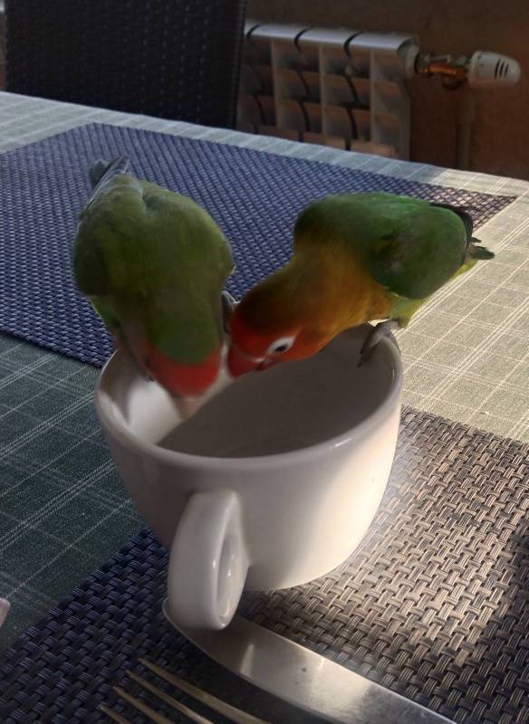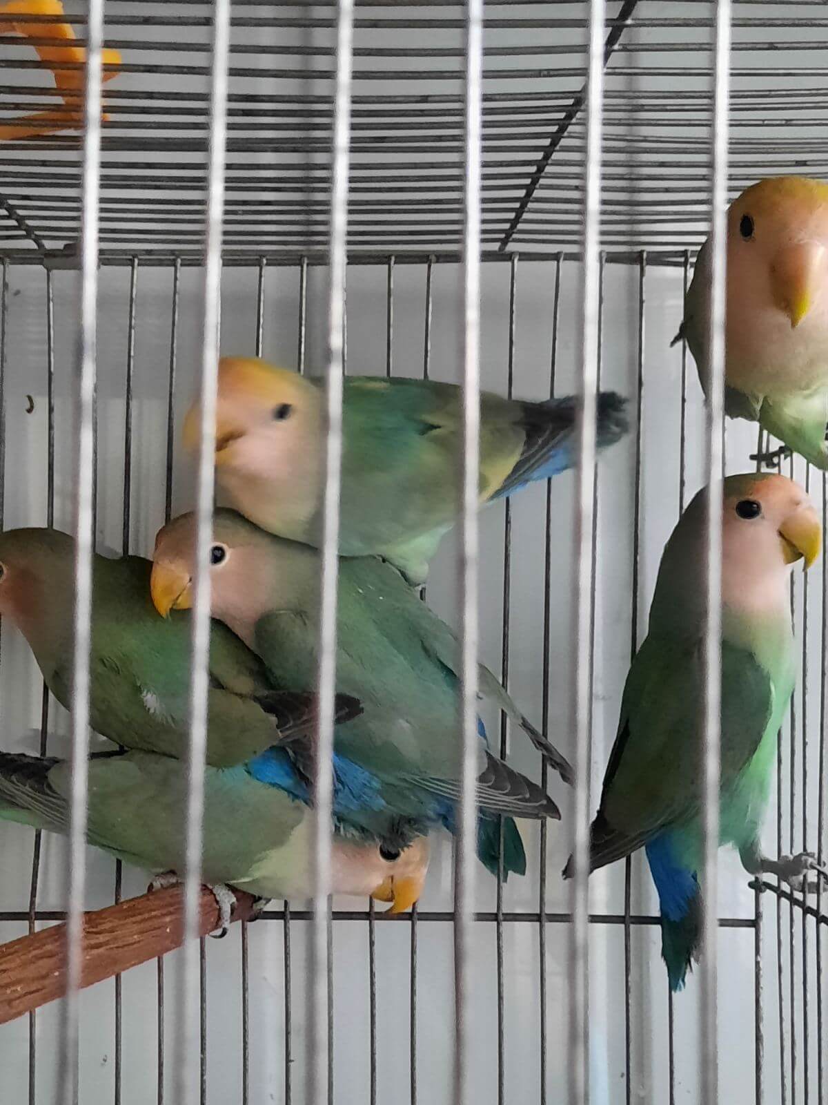 У нас бывают попугаи неразлучники — розовощекие, масковые и фишера.