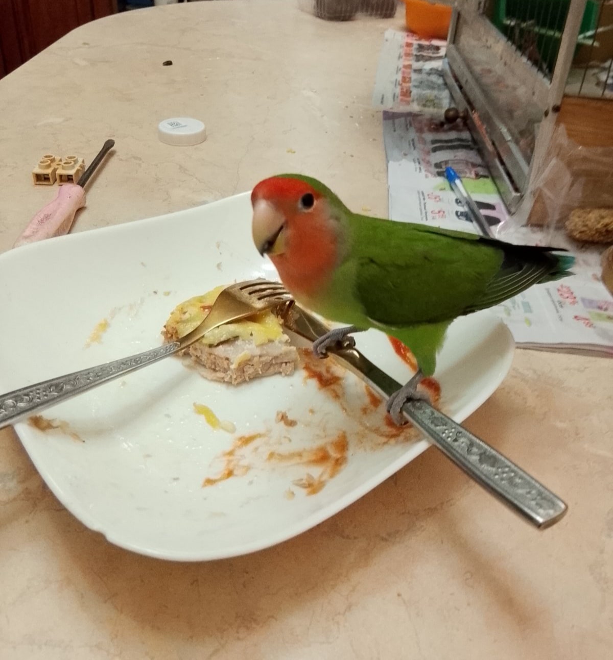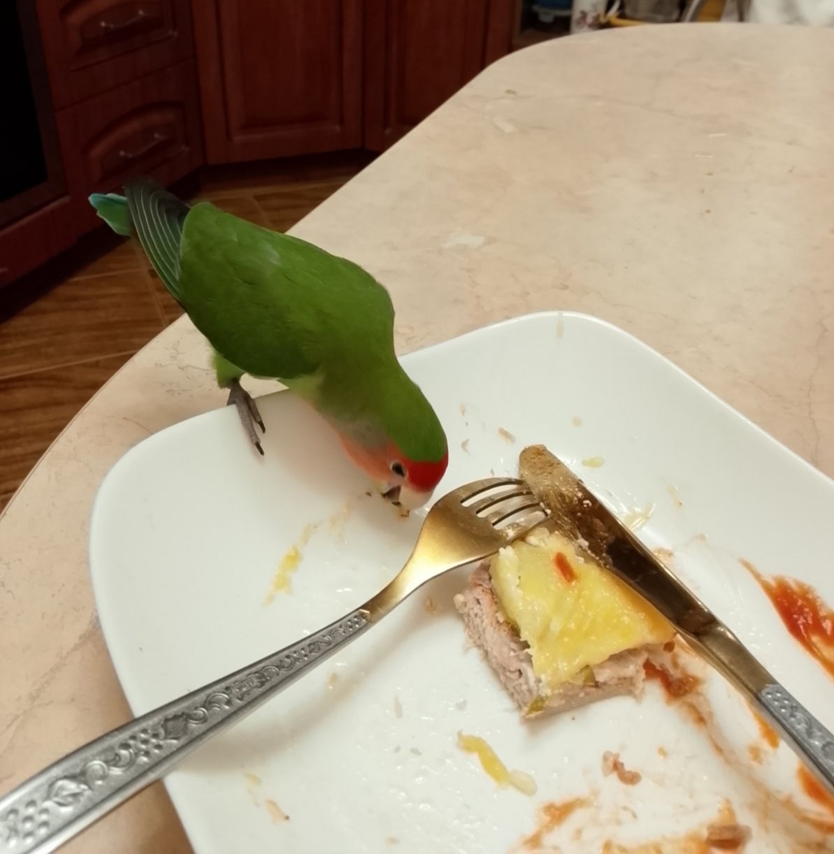 Я считаю, что этому попугаю не обязательно разговаривать. Этот недостаток попугай заменяет своей игрой с хозяином.